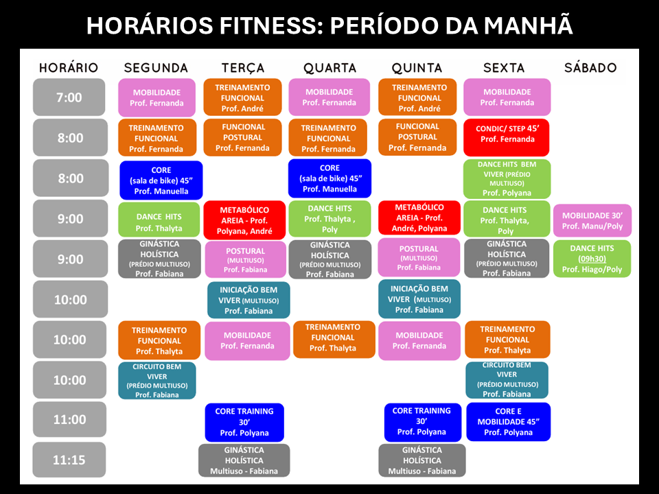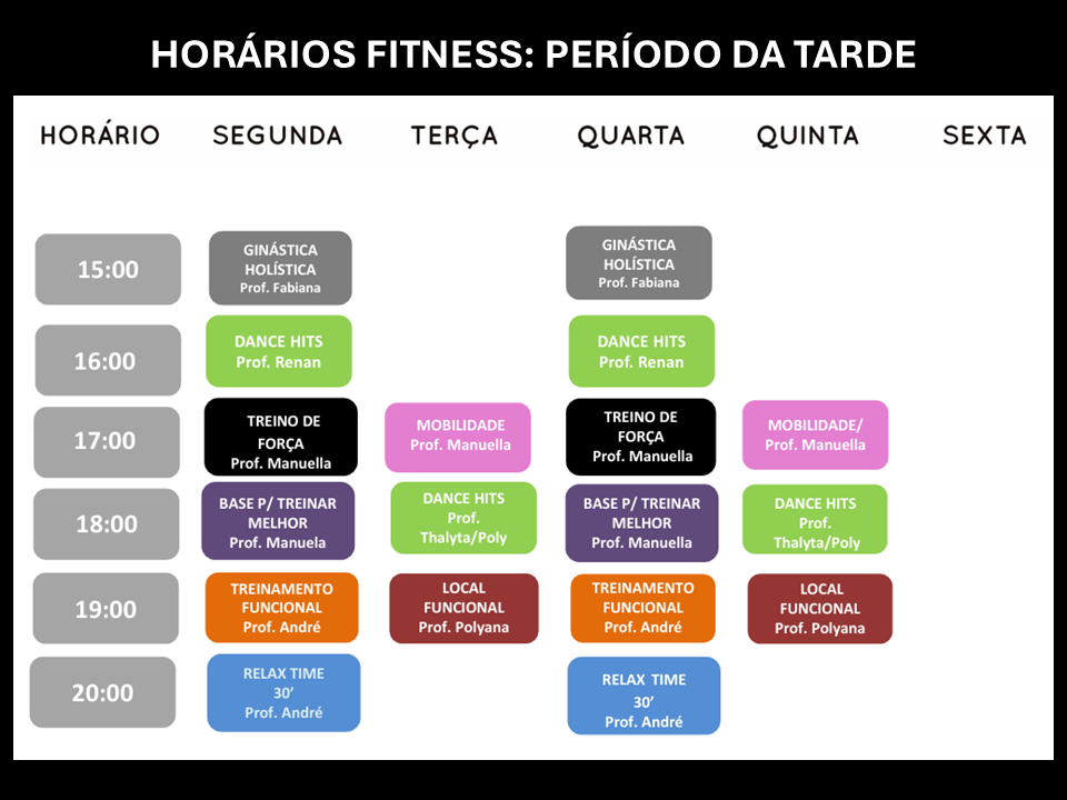 Quadros de Horários do Fitness: